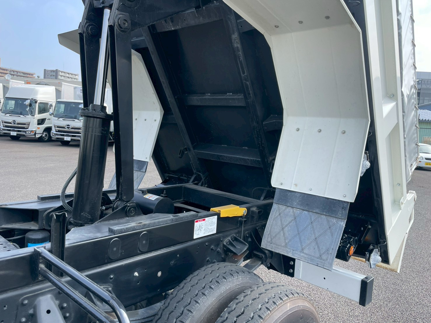 ボデー:新明和製 DR4-0003SY 手動シート 鳥居、リヤ上部→縞板張り