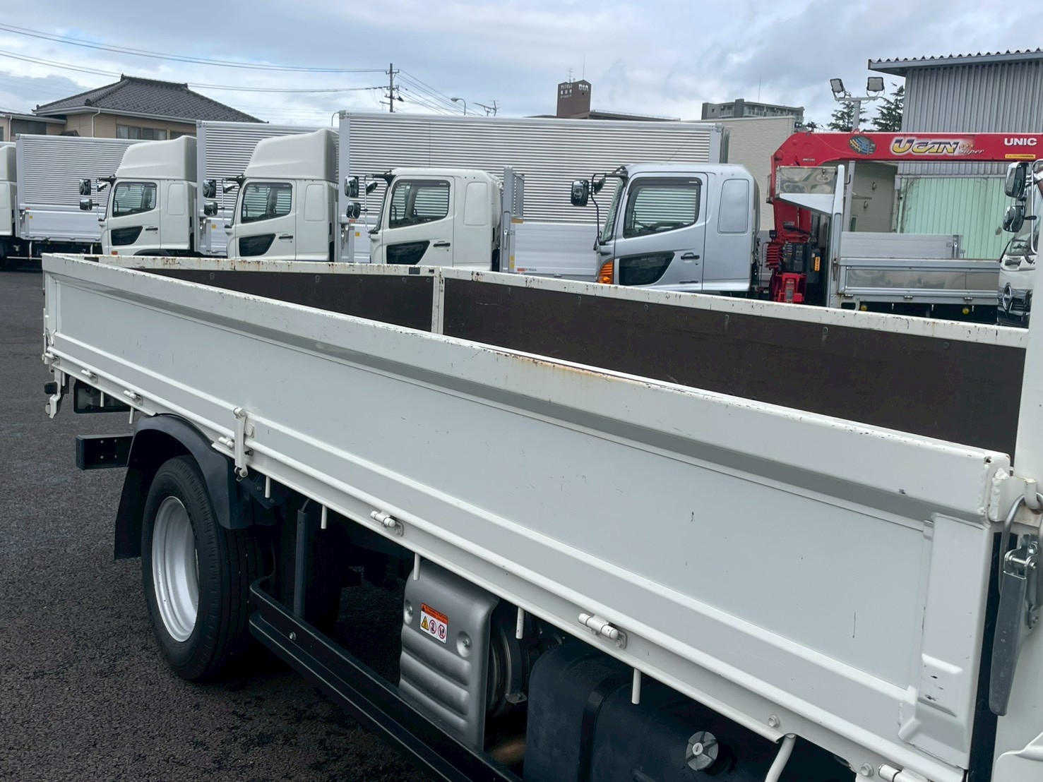 問合せ番号:H9090 ボデー:木平STD 煽り3方開 床合板 床フック4対 左工具箱