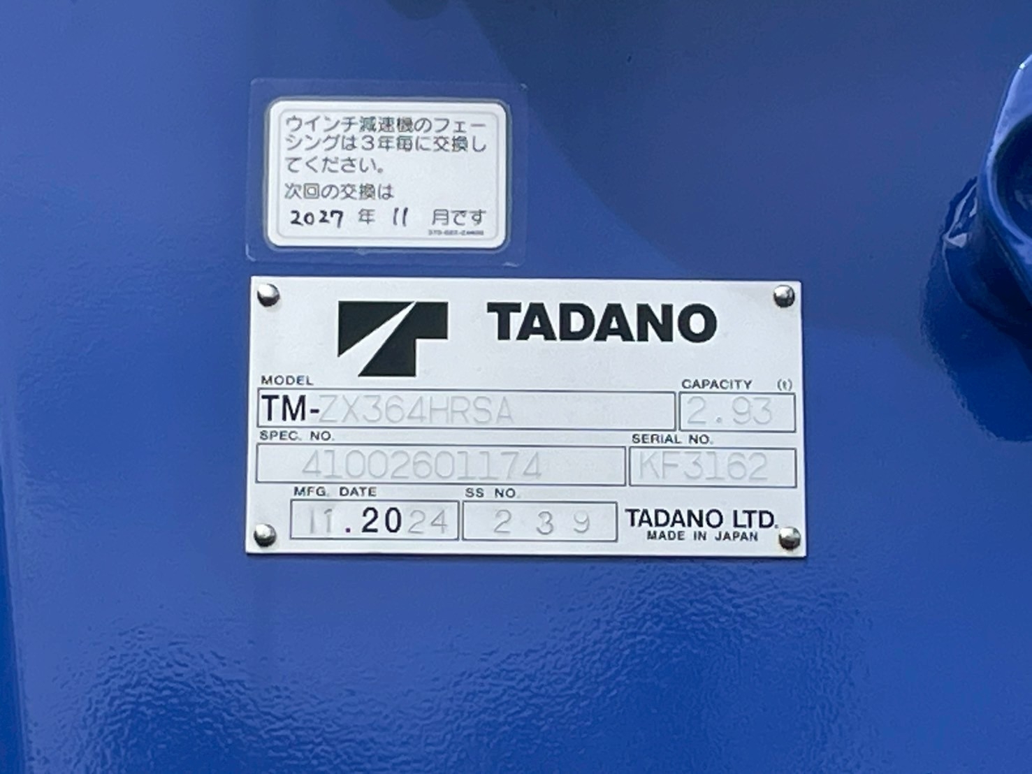 問合せ番号:K7797 ボデー:トランテックス製 A008L4501 床アピトン 床フック9対 クレーン:タダノ製 ZX364HRSA 4段R/F 2.93t吊